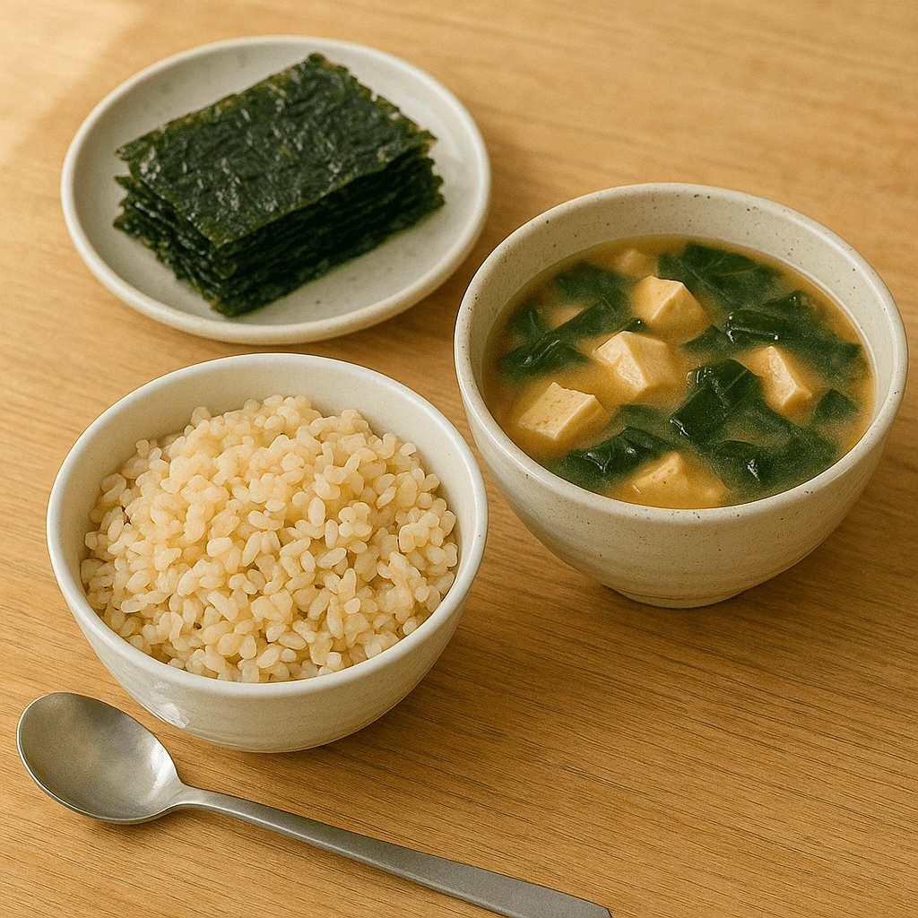 된장은 발효식품의 대표주자로 장내 환경을 개선하고, 김은 요오드·비타민A 공급원입니다. 전통식이면서도 영양균형이 완벽한 한식 아침식단입니다.