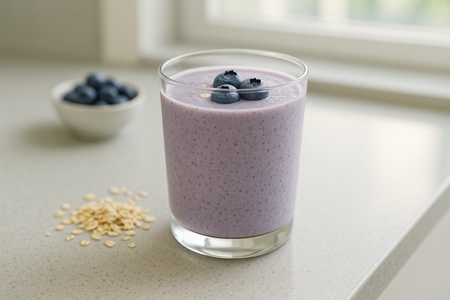 - 당뇨 환자에게 좋은 이유: 귀리의 섬유소 + 두유의 식물성 단백질 + 블루베리의 항산화 성분으로 혈당 안정에 효과적.